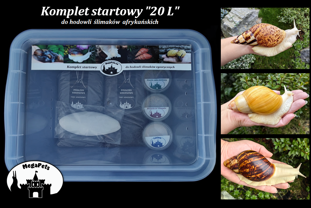 W zestaw „Komplet startowy 20 L do hodowli ślimaków egzotycznych / afrykańskich" wchodzi: