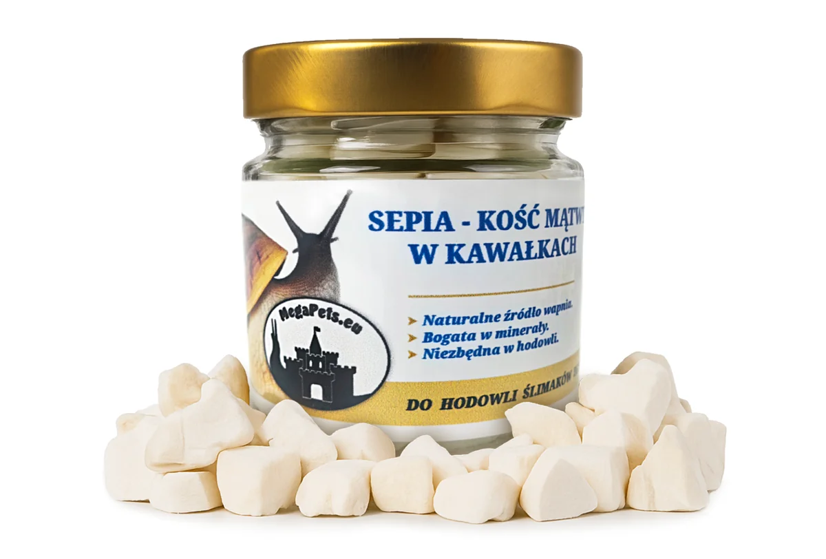 Sepia w kawałkach to w 100% naturalna kość mątwy. Kawałki sepii stanowią naturalne źródło wapnia i minerałów — idealne do stosowania jako dodatek mineralny w hodowli ślimaków, gadów, ptaków oraz innych zwierząt wymagających suplementacji wapnia.