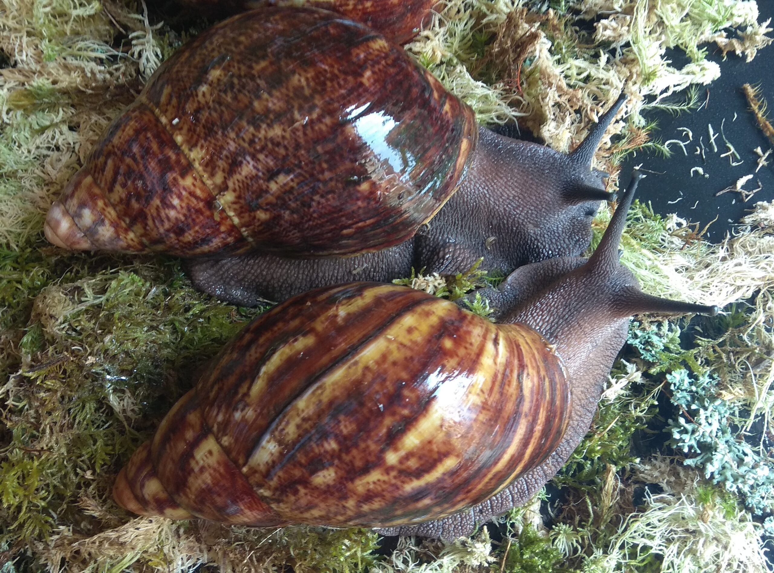 One of the largest land snails, the undisputed giants Archachatina marginata ovum XXL, in the color variety standard.