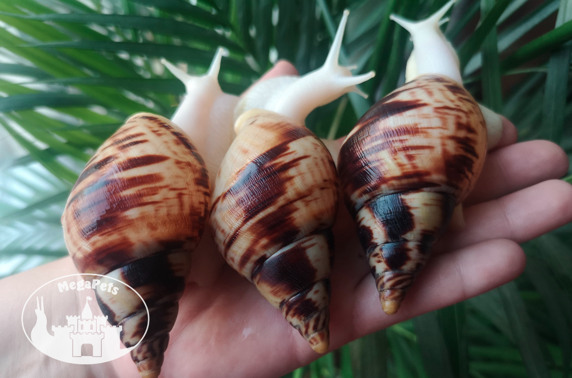 The species Lissachatina reticulata is one of the most popular and well-known African snails among beginners. This species is very active. Lissachatina reticulata grows to a large size in sight, the shell of an adult can grow even more than 16 cm.