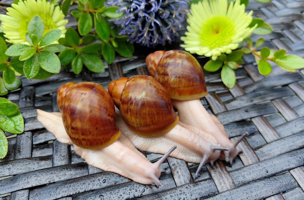 Preciosas crías de Archachatina ventricosa procedentes de una pareja parental no emparentada.